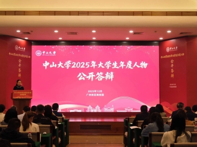 12月6日上午,广州校区南校园怀士堂内灯光璀璨、掌声雷动,中山大学2025年大学生年度人物公开答辩在此隆重举行。经过层层选拔,30位候选人(含团队)齐聚一堂,以鲜活故事诠释初心使命,用青春实绩彰显责任担当。校党委副书记张琪教授、党委组织部、党委宣传部、党委学生工作部、党委保卫部、校团委、教务部、研究生院、医学教育处、广州校区东校园管理委员会、珠海校区管理委员会、深圳校区管理委员会等职能部门代表、院系师生代表共同见证了这场汇聚青春力量的年度盛会。 校党委副书记张琪教授在致辞中指出,大学生年度人物评选,不仅是一场优秀学子的风采展示,更是一次激励全校同学的精神洗礼。通过身边榜样的示范引领,向全校同学展现青春无限可能的画卷,激励全校学子思考方向,汲取动力。在此,她向全体候选人、向中大学子们分享三点期许:一是希望大家做“心怀家国、志存高远”的追梦人,始终把个人理想融入国家发展大局,将个人理想融入时代洪流;二是希望大家做“勤学善思、笃行致远”的实干家,在实践熔炉中淬炼本领,在挑战中增长智慧;三是希望大家做“薪火相传、引领未来”的先行者,在学术高峰上不懈攀登,在品德修养上追求卓越,在社会担当中步履不停。 答辩现场,30位候选人按照既定流程依次登场,通过限时展示与现场答辩,全方位呈现了新时代中大学子的卓越风采。候选人的奋斗故事打动了现场每一位观众,答辩环节中与评委的深度互动更展现了他们扎实的专业素养与清晰的成长规划。 评委点评环节,医学院院长田国宝、东校园管理委员会主任李明章对候选人表现给予高度评价。田国宝院长指出,候选人们的精彩表现定义了多元化的成长路径,营造了积极向上的校风,激发了学子的成长动力。此外,田院长也为候选人的展示方式、展示内容等提出了指导意见,为候选人把握展示侧重点提供了方向。李明章主任基于教学相长的角度,指出大学生年度人物评选为不同学科专业、不同成长特点的学子提供了展示的平台,也展现了学校育人的卓越成果,为新形势下的学生工作创造了新的着力点。 党委学生工作部部长靳祥鹏作总结。他充分肯定了30位候选人的精彩表现与突出成就,并从“长和短”、“远和近”、“得和失”三对关系为中大学子提出成长建议。从长和短的关系看,既要补齐短板,也要发挥长板;从远和近的关系看,不仅要关注短期的成功,更要注重长期的规划;从得和失的关系看,对于有着无限可能的青年学子,得失都是成长中必经之路,应当以正确的心态看待得失。最后,他勉励青年学子要牢记初心使命,把个人成长与国家发展紧密结合,走好新时代长征路。 当答辩结束的掌声响彻怀士堂,南校园的冬日暖阳映照著一张张年轻而坚定的脸庞。30位候选人以青春为笔、以奋斗为墨,书写了新时代中大学子的奋进篇章,他们的故事将继续在校园内外传递正能量、激发新动能。未来,学校将继续深化育人平台建设,培育更多心怀家国、砥砺才干、勇担重任的时代新人,为建设教育强国、推进中国式现代化作出新的更大贡献!