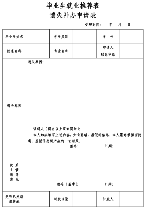 • 毕业生就业推荐表遗失补办申请表