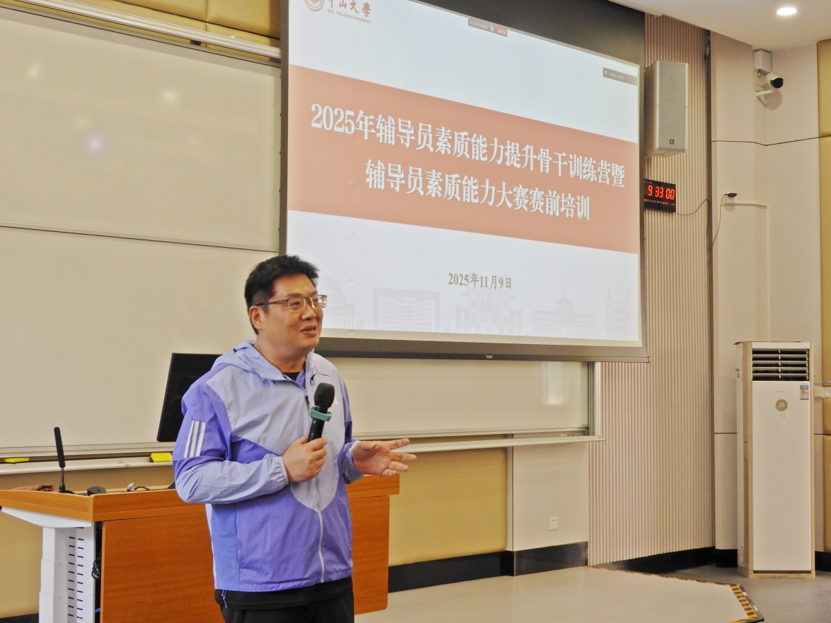 为深入学习贯彻习近平新时代中国特色社会主义思想,贯彻落实全国教育大会精神,推动《全面加强新时代高校辅导员队伍建设行动方案》落地见效,搭建全校辅导员风采展示与交流互鉴平台,2025年11月9日上午,中山大学党委学生工作部、高校思想政治工作队伍培训研修中心(中山大学)于广州校区南校园举办2025年辅导员素质能力提升骨干训练营暨辅导员素质能力大赛赛前培训。